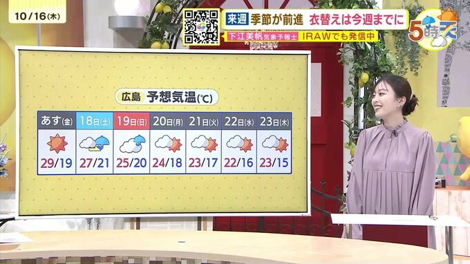 きょう16日(木)の広島県内は、午前中から断続的に雨が降り、午後を中心に降り方が強まった地点がありました。最高気温は、広島市中区で26.6℃ 福山で26.5℃など、きのうより低くなりジメジメとした一…