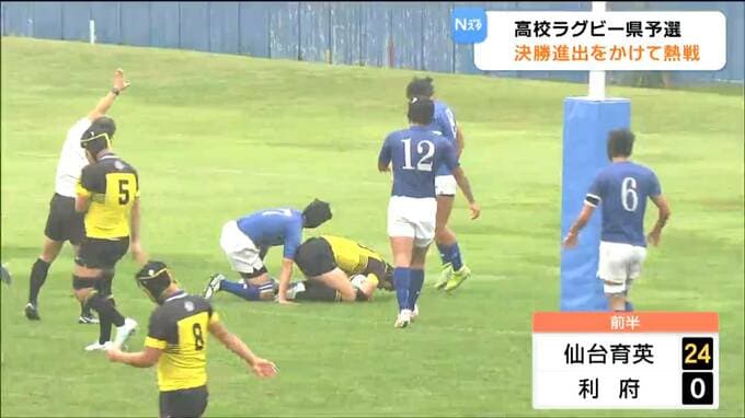 一方、攻め込まれる利府高校は、少ないチャンスで相手陣内へ果敢に突破を試みますが、仙台育英の固い守りに封じ込まれます。