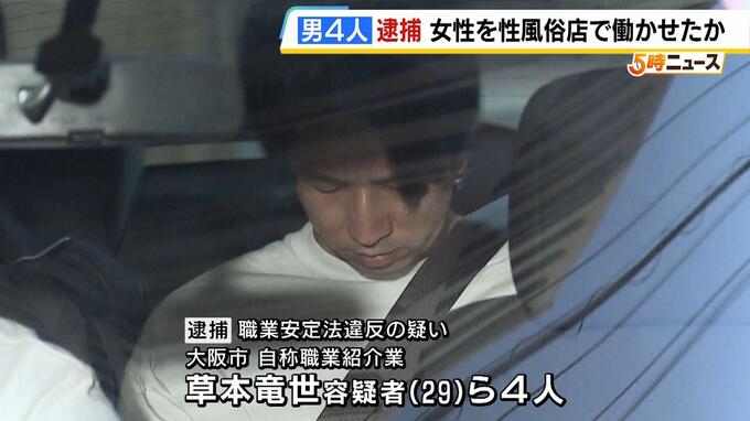 ホストクラブの女性客に性風俗店の仕事をあっせんしたとして、男4人が逮捕されました。 職業安定法違反の疑いで逮捕されたのは、大阪市の自称職業紹介業・草本竜世容疑者(29)ら4人です。 警察によりますと…