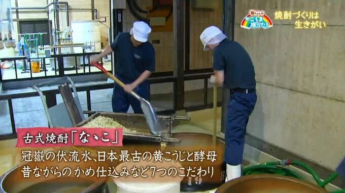 仕込んでいる焼酎の銘柄は「なゝこ」。原材料には、冠嶽の伏流水と、日本最古の黄こうじと酵母、そして昔ながらのかめで仕込むなど、7つのこだわりでつくる古式焼酎です。