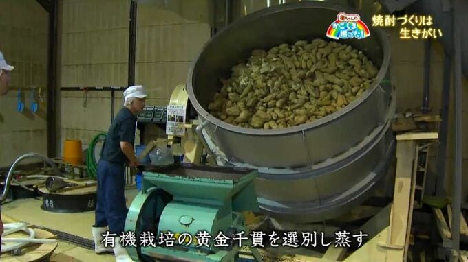 まず、有機栽培の黄金千貫を一つ一つ丁寧に選別し、蒸し上げます。
