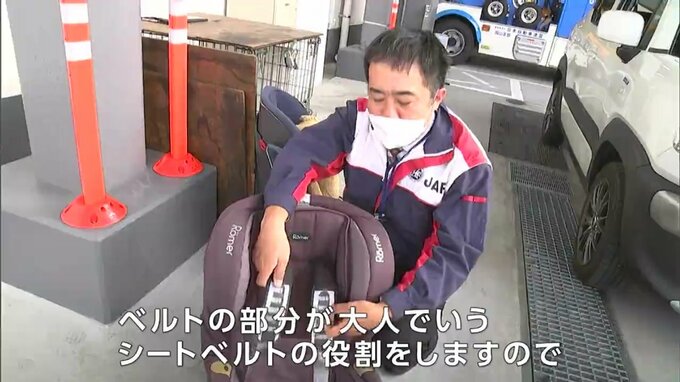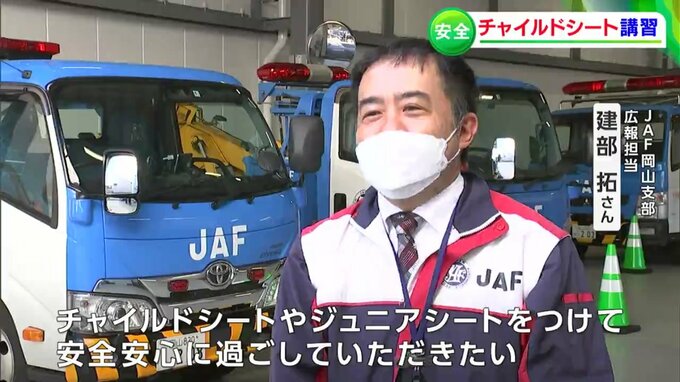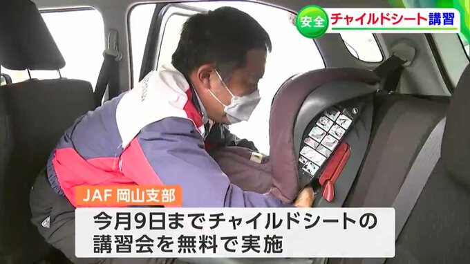 JAF岡山支部が、子どもとの外出が増える年末年始に向け、チャイルドシートの安全な使い方を学んでほしいと開いている講習会です。