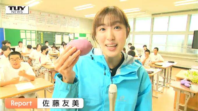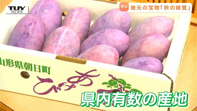 佐藤友美アナウンサー「色鮮やかな朝日町を代表するアケビ。きょうは地元の中学生がこの作物について徹底的に学びます」