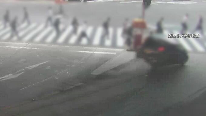 15日朝の通勤通学ラッシュであわただしい横断歩道で起きた事故。