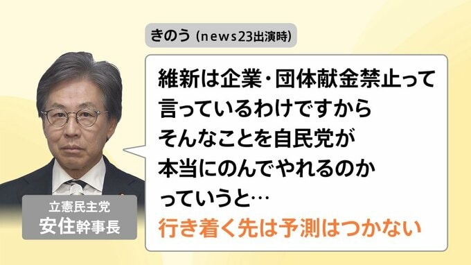 「維新は企業・団体献金禁止って言っているわけですから、そんなことを自民党が本当にのんでやれるのかっていうと…行き着く先は予測はつかない」