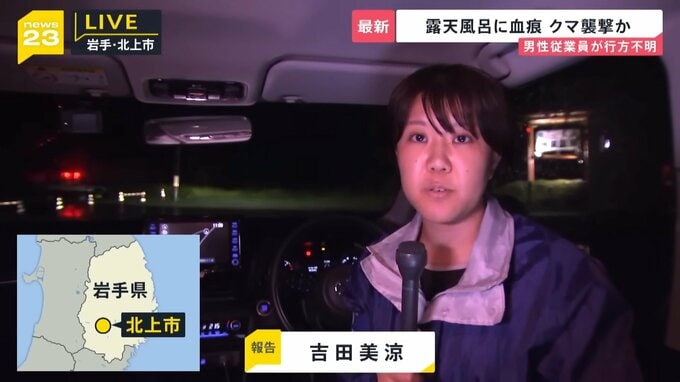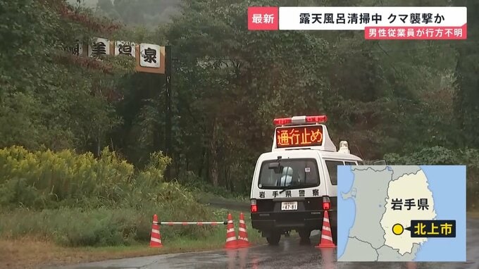 全国的にクマによる被害が相次ぐ中、16日午前11時ごろ、岩手県北上市の温泉施設から「露天風呂の清掃をしていた男性従業員の姿が見えない」と警察に通報がありました。露天風呂には血痕があり、警察は現場の状況などから男性がクマに襲われ、連れ去られたとみています。