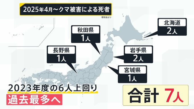 全国で相次ぐ被害。今年度クマに襲われて死亡した人は7人。これまでで最も多かった2023年度の6人を上回り、過去最多となりました。