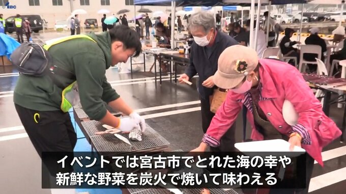 イベントでは宮古市で採れた海の幸や新鮮な野菜を購入して、会場内に用意された無料の焼き台を使って炭火で焼いて味わうことができます。