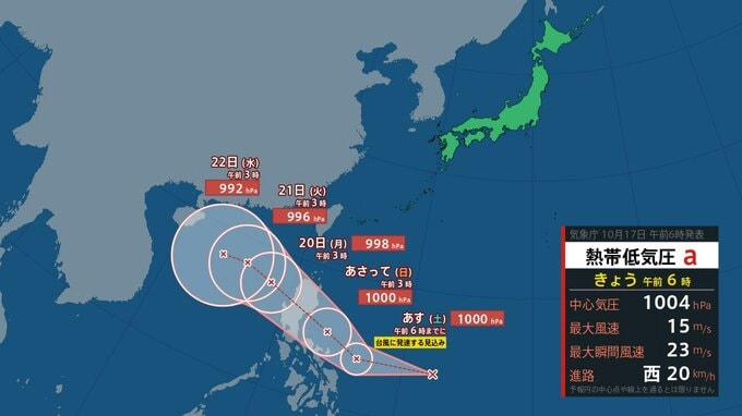 気象庁によりますと、きょう(17日)午前6時フィリピンの東に「熱帯低気圧」が発生しているということです。