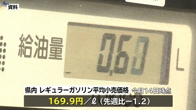 石油情報センターによりますと、14日時点の県内のレギュラーガソリンの平均小売価格は、先週から1.2円値下がりした1リットルあたり169.9円でした。
