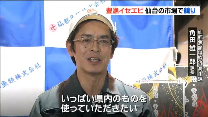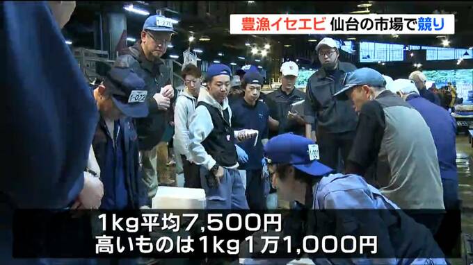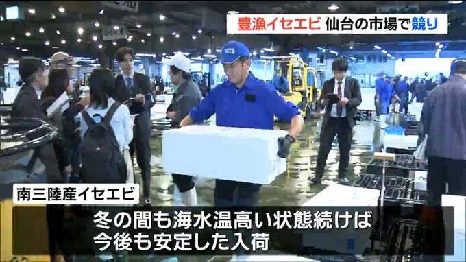 宮城県南三陸町を中心に、県内で水揚げ量が増えているイセエビがけさ、仙台市中央卸売市場に入荷し競りにかけられました。