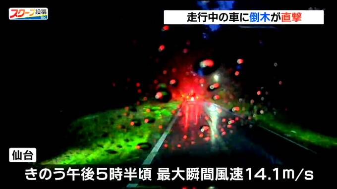 仙台では、10月16日午後5時半頃最大瞬間風速14.1メートルを観測していました。市道には木の枝などが散乱したものの、ほかのドライバーの協力もありすぐ通行できるようになったということです。