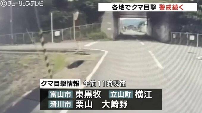 小杉地区ではきょうクマの目撃情報は入っていませんが県内では富山市東黒牧や立山町、滑川市で目撃されています。