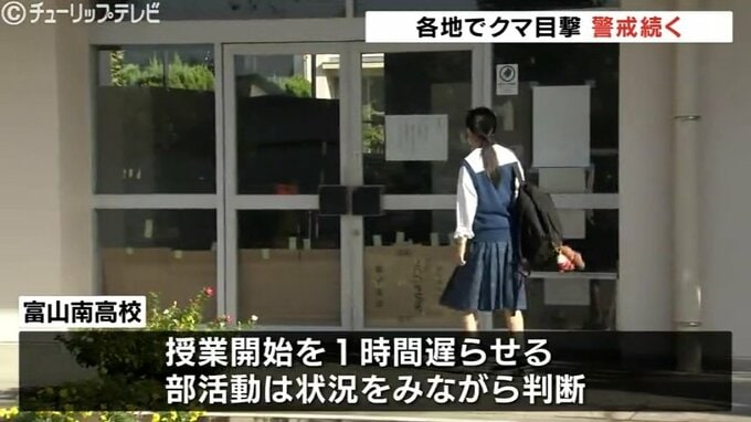 この高校ではクマが活動しやすいと言われる早朝の時間帯を避けるため、授業の開始を1時間遅らせたほか部活動は状況をみながら判断するということです。