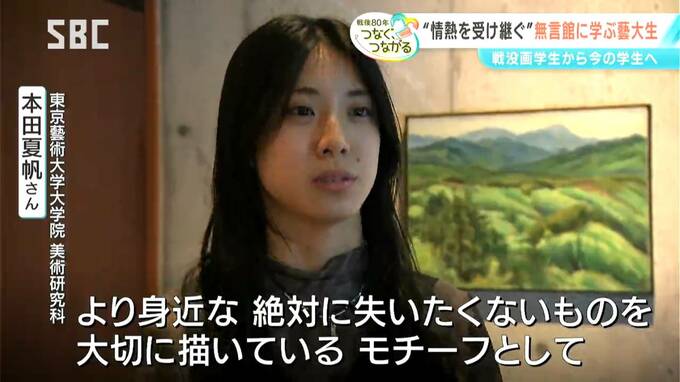 「信州の戦後80年つなぐ、つながる」です。東京藝術大学の大学院生たちが、上田市の無言館を訪れ、そこから、インスピレーションを受けた展示会を開きました。