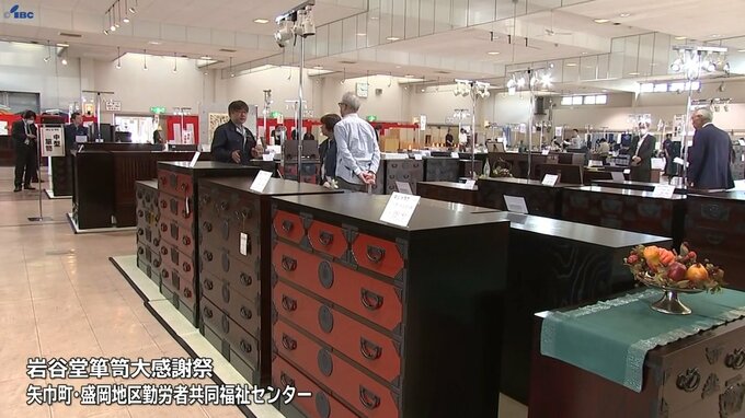岩谷堂箪笥をはじめ県内の工芸品を集めた販売会が17日、岩手県矢巾町で始まりました。