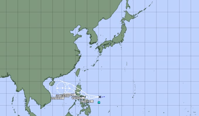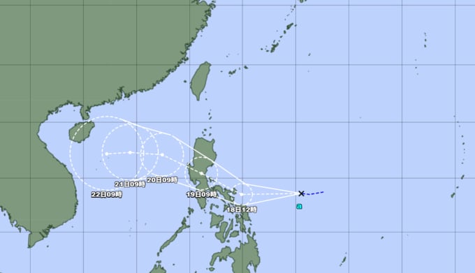 進行方向、速さ 西北西 20 km/h (10 kt)