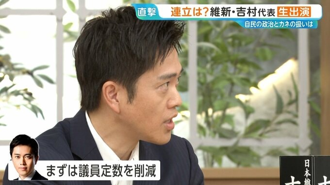 連立の条件として、議員定数の削減を約束できなければ合意しないと明言しました。