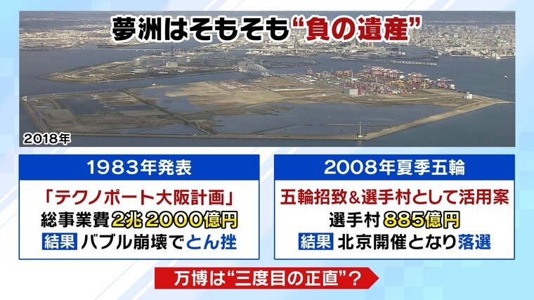 もともと“負の遺産”とも言われるような土地だった大阪・関西万博の会場「夢洲」。背景にあるのは二度の失敗です。