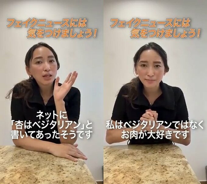 杏さんは自身のYouTubeチャンネルにショート動画を投稿。 “みんなにお料理が出される場で、私の分だけお肉が入っていなかった” と寂しい体験を打ち明けました。その理由を尋ねたところ、 “ネットに「杏がベジタリアン」と書いてあったそうです” とのこと。しかし杏さん自身は “私はベジタリアンではなくお肉が大好きです” とはっきり語りました。