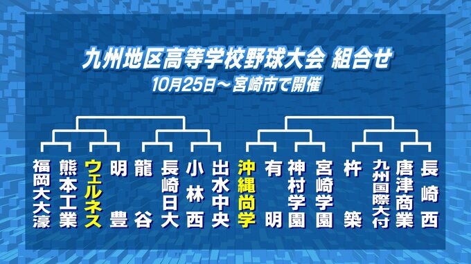 秋の県大会を制した沖縄尚学の初戦は今月26日、熊本2位の有明と対戦。県大会準優勝の日本ウェルネスは今月25日、大分1位の明豊に挑みます。
