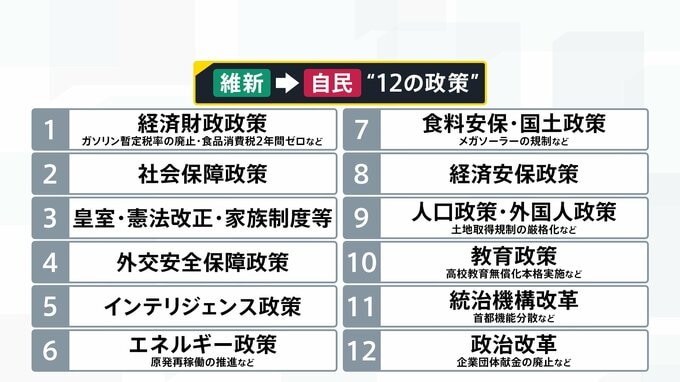 政治部・川瀬デスクは「現在の段階では、自民党と維新の政策協議が最大の焦点」と指摘。今後も水面下で協議が続き、週末にも維新が役員に対し説明を行うなど、21日の臨時国会に向けて最終調整が行われるとみられる。