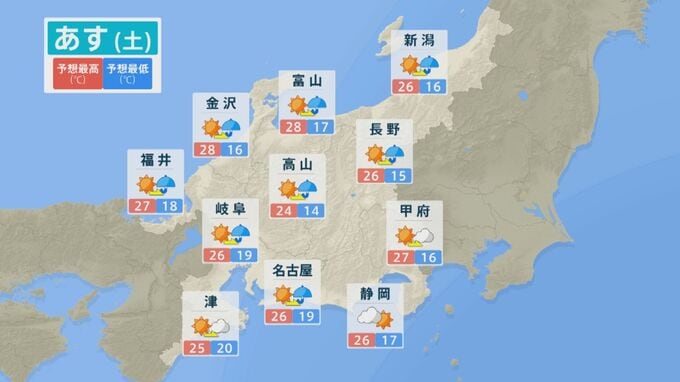北陸では、夕方以降雷をともなって激しい雨が降り大雨になるところがある見込みです。