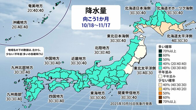 日照時間は「平年並か少ない」秋晴れは少ない傾向