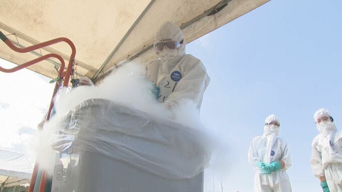 高病原性鳥インフルエンザの発生を想定した防疫訓練が17日大分市で行われ、県など関係機関が初動対応の手順を確認しました。この訓練は、高病原性鳥インフルエンザが発生した際に迅速な対応につなげるため、県が毎…