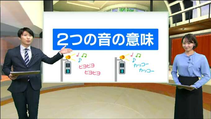 この音、調べてみると目の不自由な人が安全に横断できるよう様々な工夫が施されていることが分かりました。今回は2つ紹介します。まずは「音の意味」についてです。実は「ピヨピヨ」「カッコー」の音にはある決まりがあるんです。