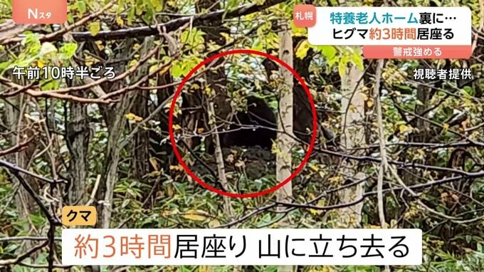 きょう、札幌市の老人ホームの裏におよそ3時間にわたってクマが出没しました。警察などが警戒を強めています。森の奥でうごめく、黒い影。きょう午前7時半ごろ、札幌市手稲区で撮影されたクマです。クマが出没した…