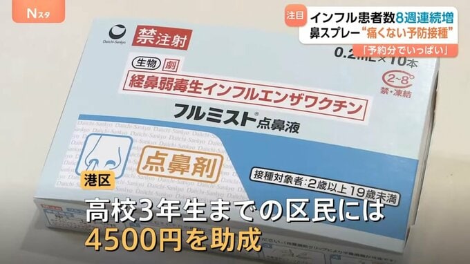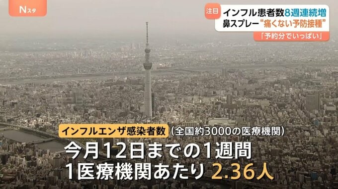 インフルエンザの感染者数が8週連続で増える中、“痛くない予防接種”が、いま注目されています。今シーズンから接種費用の助成を始めた自治体もありますが、そもそもどういうワクチンなのでしょうか。