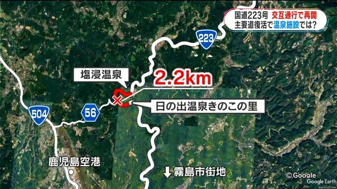 8月の集中豪雨で、国道223号ではがけ崩れが相次ぎ、霧島市牧園町宿窪田の塩浸温泉から、日の出温泉・きのこの里までの2.2キロが通行止めとなっていました。