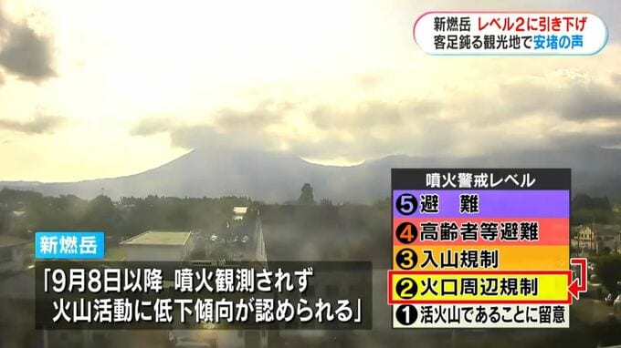 気象台は17日午前11時、「9月8日以降、噴火が観測されず、火山活動に低下傾向が認められる」として、3から、2の「火口周辺規制」に引き下げました。客足が遠のいていた高千穂河原では、安どの声が聞かれました。