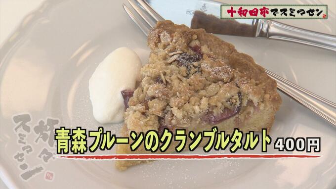 齋藤アナ、気になるお菓子を見つけます。青森産のプルーン入りタルトの上に、アーモンドクリームとクランブルがのったお菓子『青森プル―ンのクランブルタルト』(400円)です。