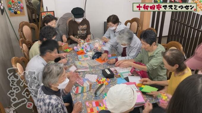 次に立ち寄ったのは、産直野菜や花、雑貨など多彩なお店が並ぶ『街なか市場』です。その一角で、なにやら楽しそうな会合が開かれています。伺うと、皆さんは折り紙教室のお仲間なんだそうです。
