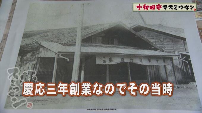続いては、老舗の和菓子店に立ち寄ります。ここは十和田市の老舗菓子店『中島菓子舗』。店内には、創業当時の写真が飾ってありました。白黒写真には木造平屋の店舗が写っています。