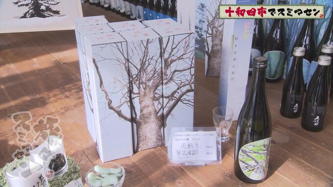 様々な日本酒の中からお店の方がすすめてくれたのは、鳩正宗の『天祈り(てのり)』。地元の酒蔵、鳩正宗の杜氏である佐藤企さんのワザと十和田市現代美術館収蔵作品アーティストの山本修路さんのデザインとがコラボしたお酒なんだそうです。