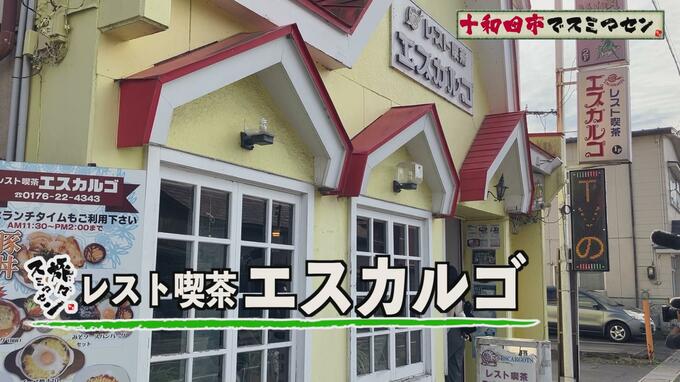 ハンバーグが美味しいと評判のレスト喫茶『エスカルゴ』に入ります。店舗外観は、クリーム色の壁に赤い庇、白枠窓でなんだかメルヘンチックです。