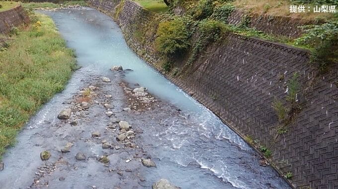 県や上野原市が現地調査を実施し、棡原地内の「ミューの森」前の河川で魚の死骸が確認されました。