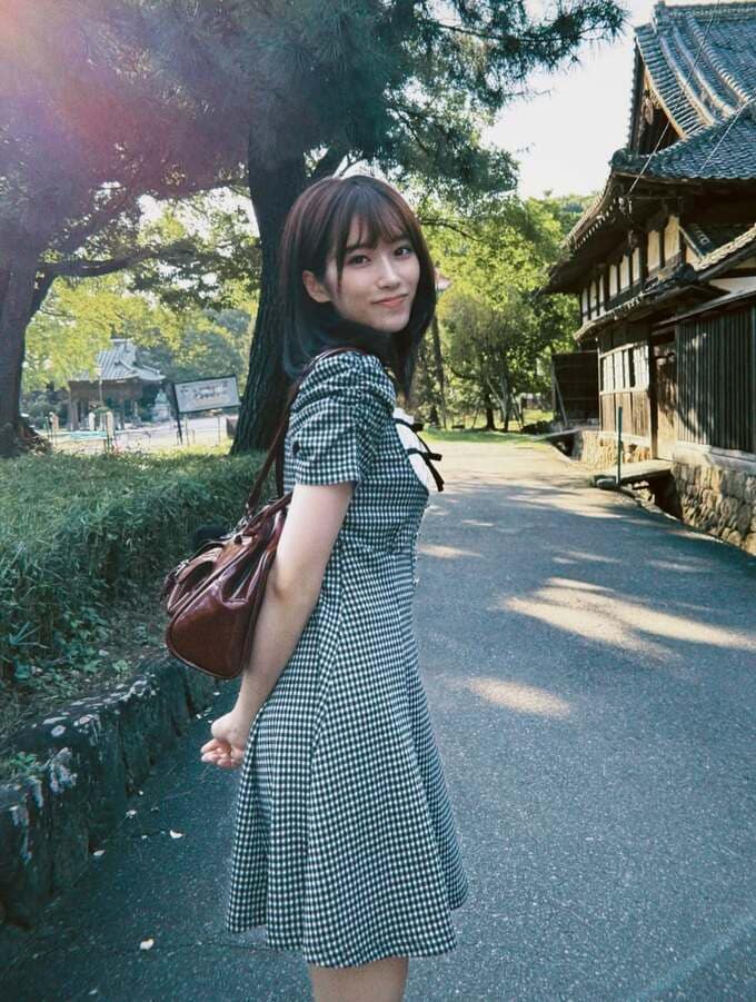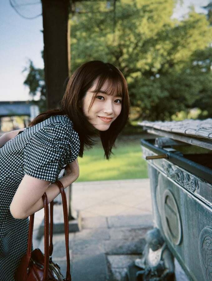 片岡さんは、1枚目と2枚目に白と黒の細かいチェックのワンピースで寺社の境内を散策する光景を投稿。「今年の夏は時間さえあればパパにくっついてた」「いっぱい写真も撮ってくれた」とテキストしています。