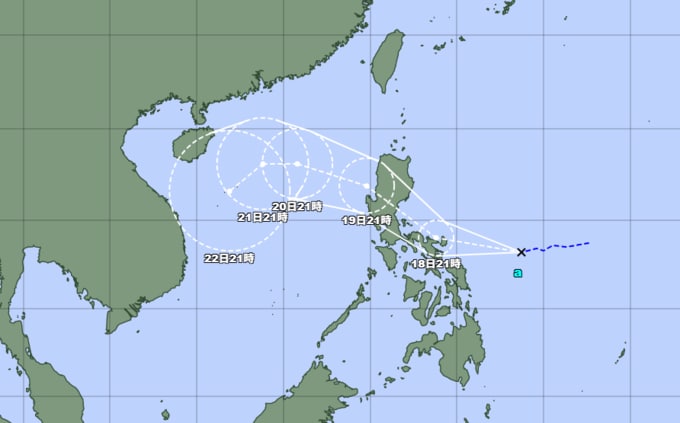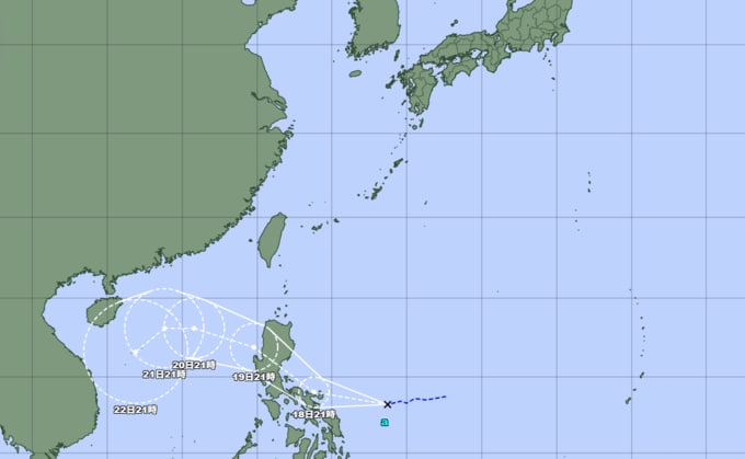 予報円の中心 北緯18度05分 (18.1度)