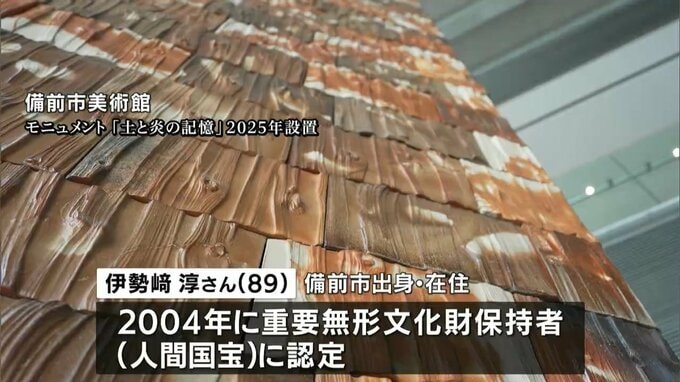 文化功労者に決った伊勢﨑淳さんは備前市生まれの89歳。岡山大学特設美術科を卒業後、備前焼の名工父・陽山さんに弟子入りしました。