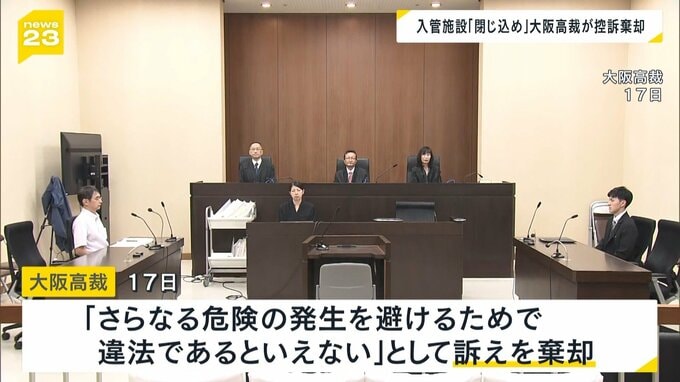 大阪の入管施設で収容者17人が6人部屋に24時間以上閉じ込められたのは不当と元収容者らが訴えた控訴審判決で、大阪高裁は控訴を棄却しました。 2018年、大阪市住之江区の入管施設で6人部屋に集まってい…