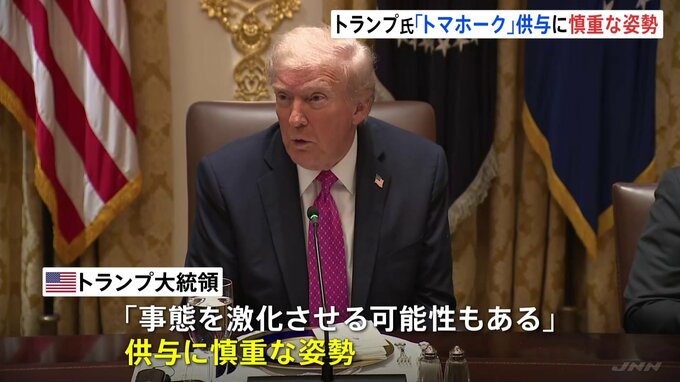 アメリカのトランプ大統領はウクライナのゼレンスキー大統領と会談し、巡航ミサイル「トマホーク」の供与について、「事態を激化させる可能性もある」と慎重な姿勢を示しました。記者「まもなく、トランプ大統領と…