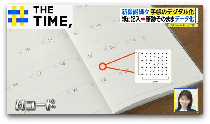 その仕組みは、ペンの先端に付いたカメラが手帳に細かく印刷された点(Nコード)を読み取り、タイムラグ無くアプリの手帳にも反映されるというもの。