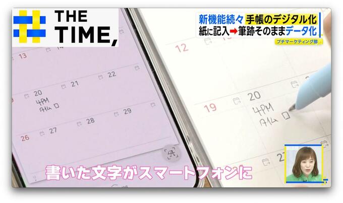 アプリに対応した紙の手帳に予定を記入すると、瞬時に筆跡がそのままデジタル化されアプリ画面のカレンダーに表示されます。