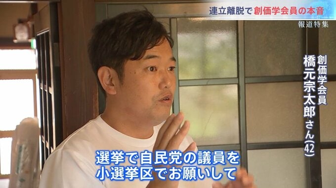 連立離脱を歓迎している創価学会員もいる。石川県珠洲市の橋元宗太郎さん(42)だ。