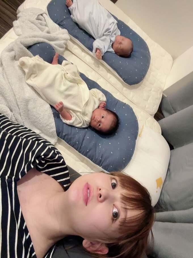 続けて「双子、初めて手が重なってました まだお互いを認識してない時期もきっと尊い いつか2人で話したり遊んだりするんだね」と、綴りました。