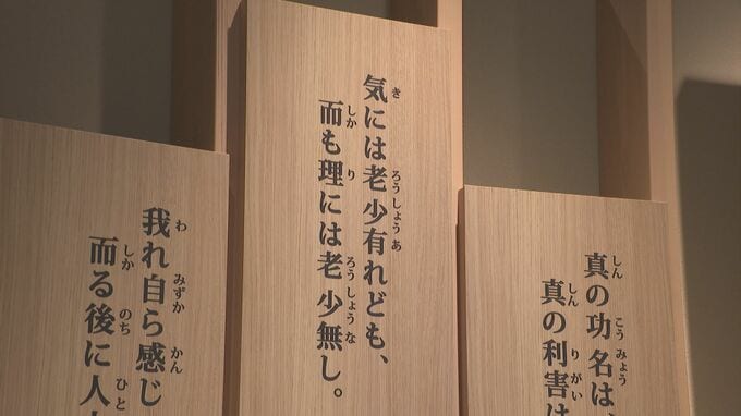 19日オープンしたこの施設では佐藤一斎の教えを身近に感じてもらおうと、指導者のための指南書と呼ばれ、西郷隆盛が生涯にわたって愛読したことでも知られる著書「言志四録」の言葉が紹介されているほか、人工知能を通して佐藤一斎との対話を疑似体験できます。